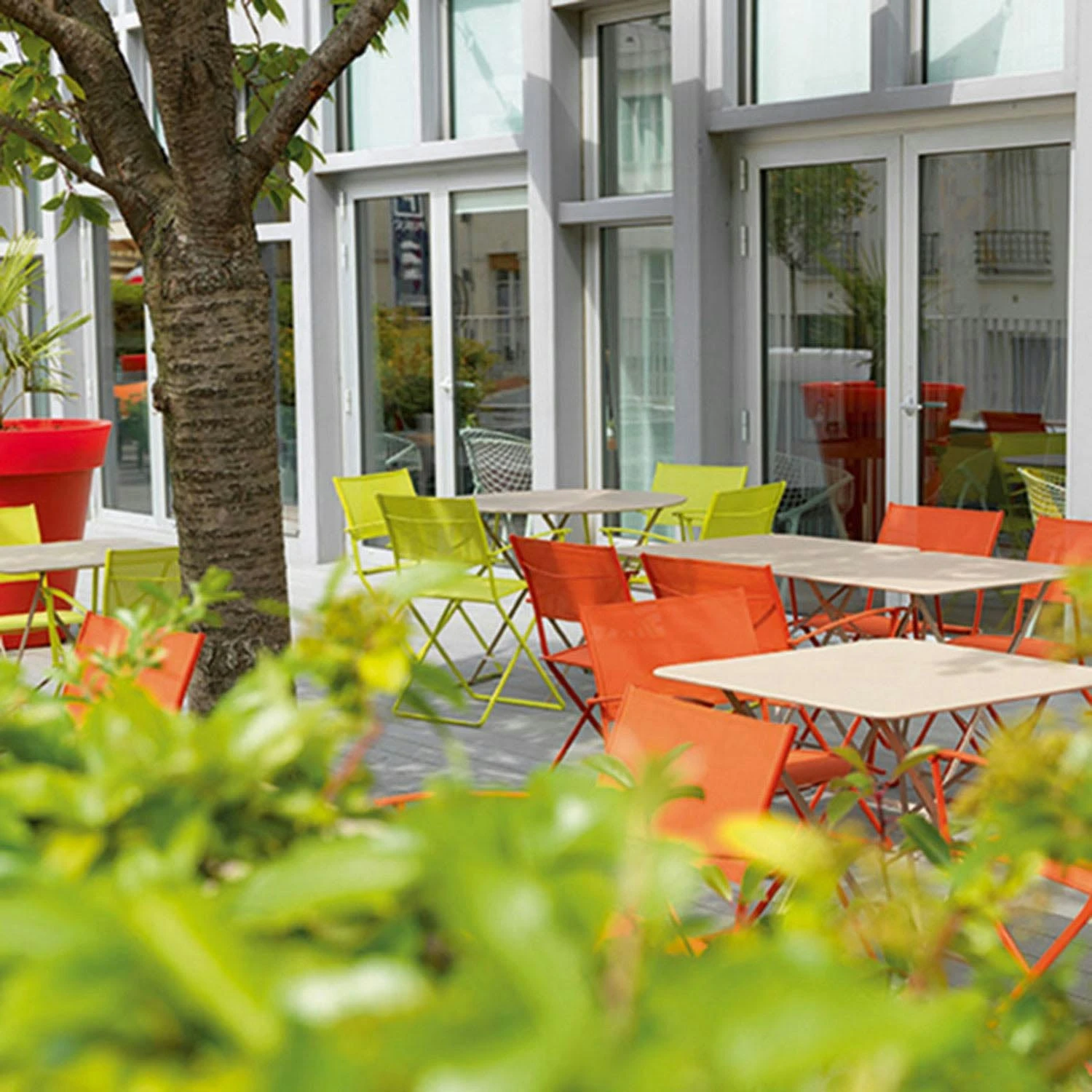 Bistro table from Fermob. A neat and simple table made of painted steel with a UV-resistant surface that will not fade in the sun. The table is ideal on the balcony or patio at the door, perfect to sit and take your morning coffee at.