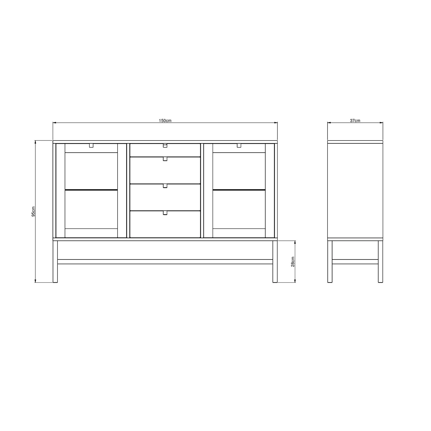 This sideboard comes from Mavis popular Falsterbo series which contains a variety of different storage furniture for the home. The sideboard is a clean and minimalist piece of storage furniture that has two cabinets with glass doors and bookshelves in glass plus four drawers.