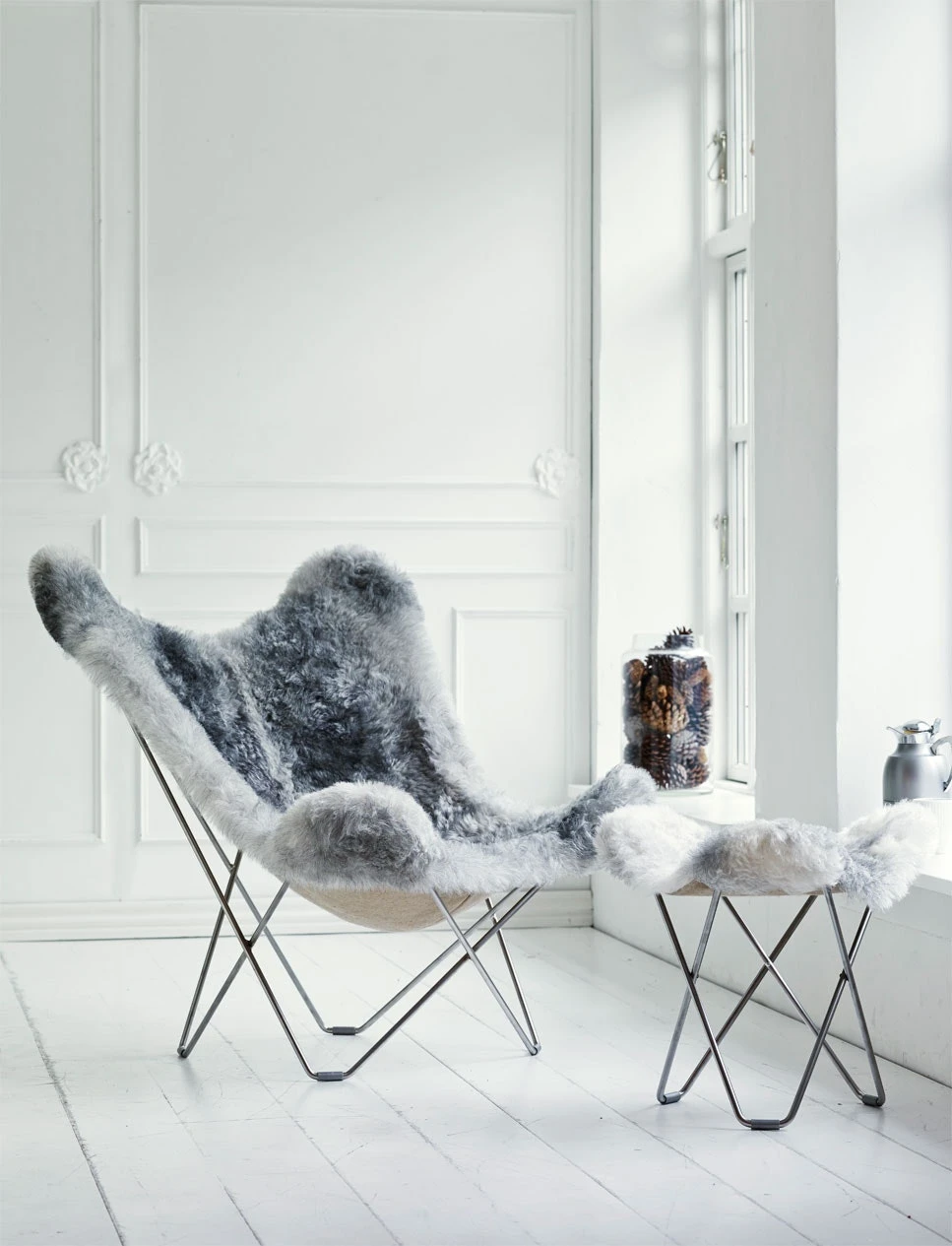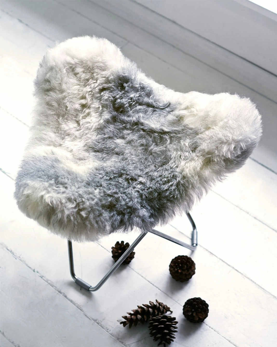 Flying Goose Iceland Stool from Cuero is a stylish and aesthetic stool that matches well with the Butterfly armchair Mariposa. It is made in Småland with great craftsmanship and environmental thinking. The undercarriage is made of solid Swedish extra hard steel. The sheepskin is a natural material which gives each chair a unique look and if you take care of it the stool it will last for generations thanks to the excellent quality. Only one in a hundred sheep is born naturally grey in Iceland and therefore very exclusive. The stool quickly finds a nice place in the home. The sheepskin is available in several different colours, short-haired (Shorn) or long-haired (Wild) and with black or chromed undercarriage. In the same model there is also Pampa Stool which is made of Italian high quality leather.