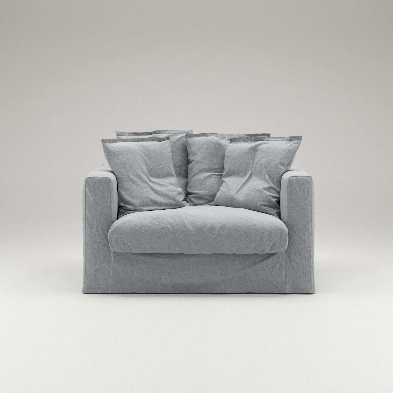 This sofa/armchair is dressed in an exclusive fabric in 100% linen. The cover has a 30,000 Martindale value and can be washed in a machine at 30 degrees or be hand washed. Every Loveseat includes upholstery and all the covers are sold separately for the opportunity to buy more.