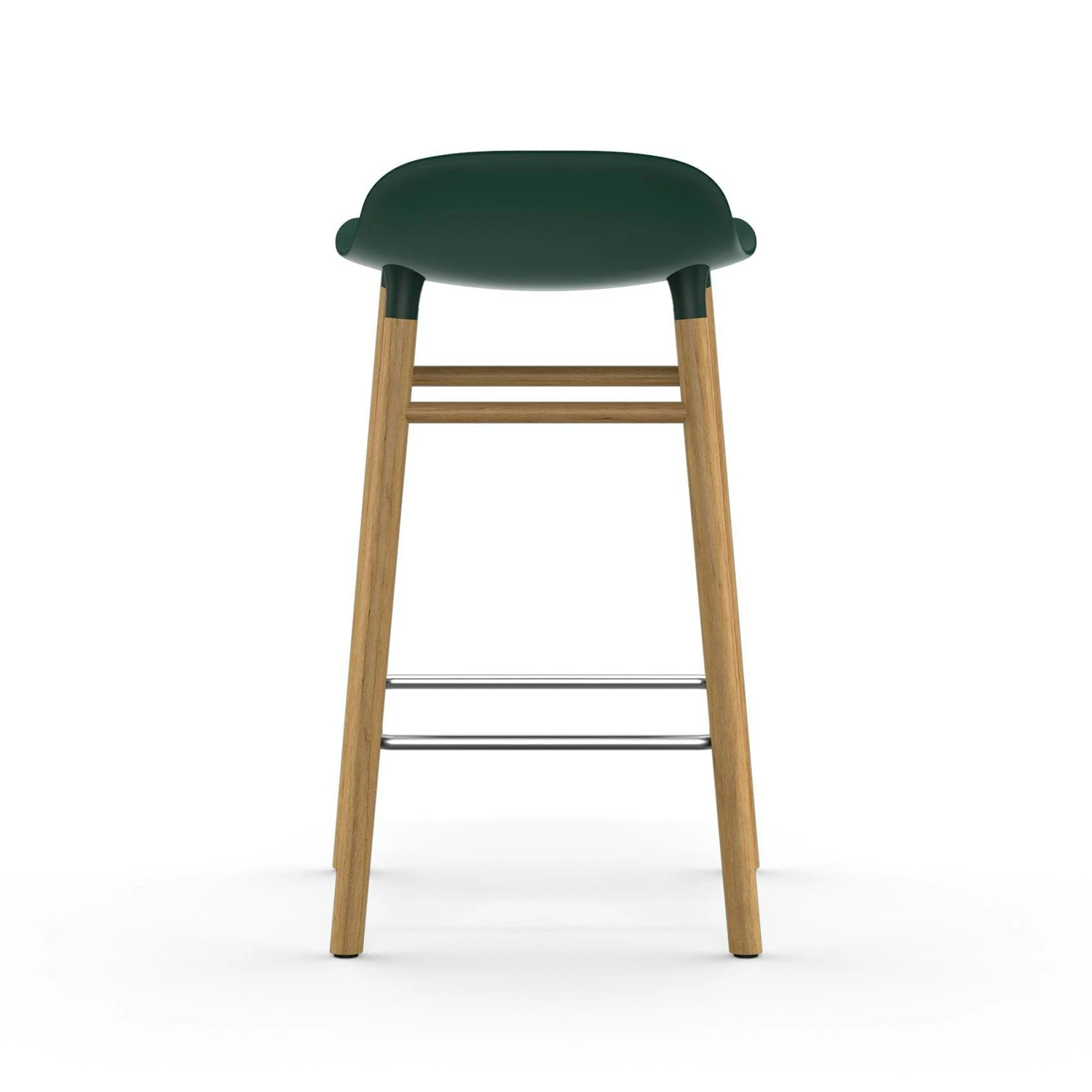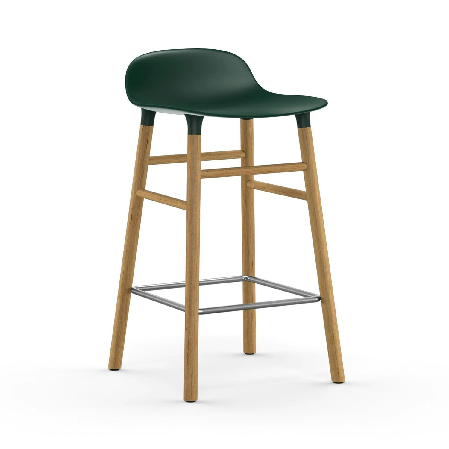 Form barkruk van Normann Copenhagen, ontworpen door Simon Legald. Form is een stijlvolle en strakke barkruk met een eikenhouten middenstel en zitting van duurzaam kunststof. De kruk heeft een comfortabele voetensteun voor een hoger zitcomfort. Form is verkrijgbaar in twee zithoogtes, 75 centimeter aangepast aan bartafels en 65 centimeter geschikt voor de meeste keukentafels. Gemonteerd geleverd.