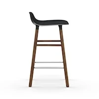 Form barkruk van Normann Copenhagen, ontworpen door Simon Legald. Form is een stijlvolle en strakke barkruk met een walnoothouten frame en zitting van duurzaam kunststof. De kruk heeft een comfortabele voetensteun voor een hoger zitcomfort. Form is verkrijgbaar in twee zithoogtes, 75 centimeter aangepast aan bartafels en 65 centimeter geschikt voor de meeste keukentafels. Gemonteerd geleverd.