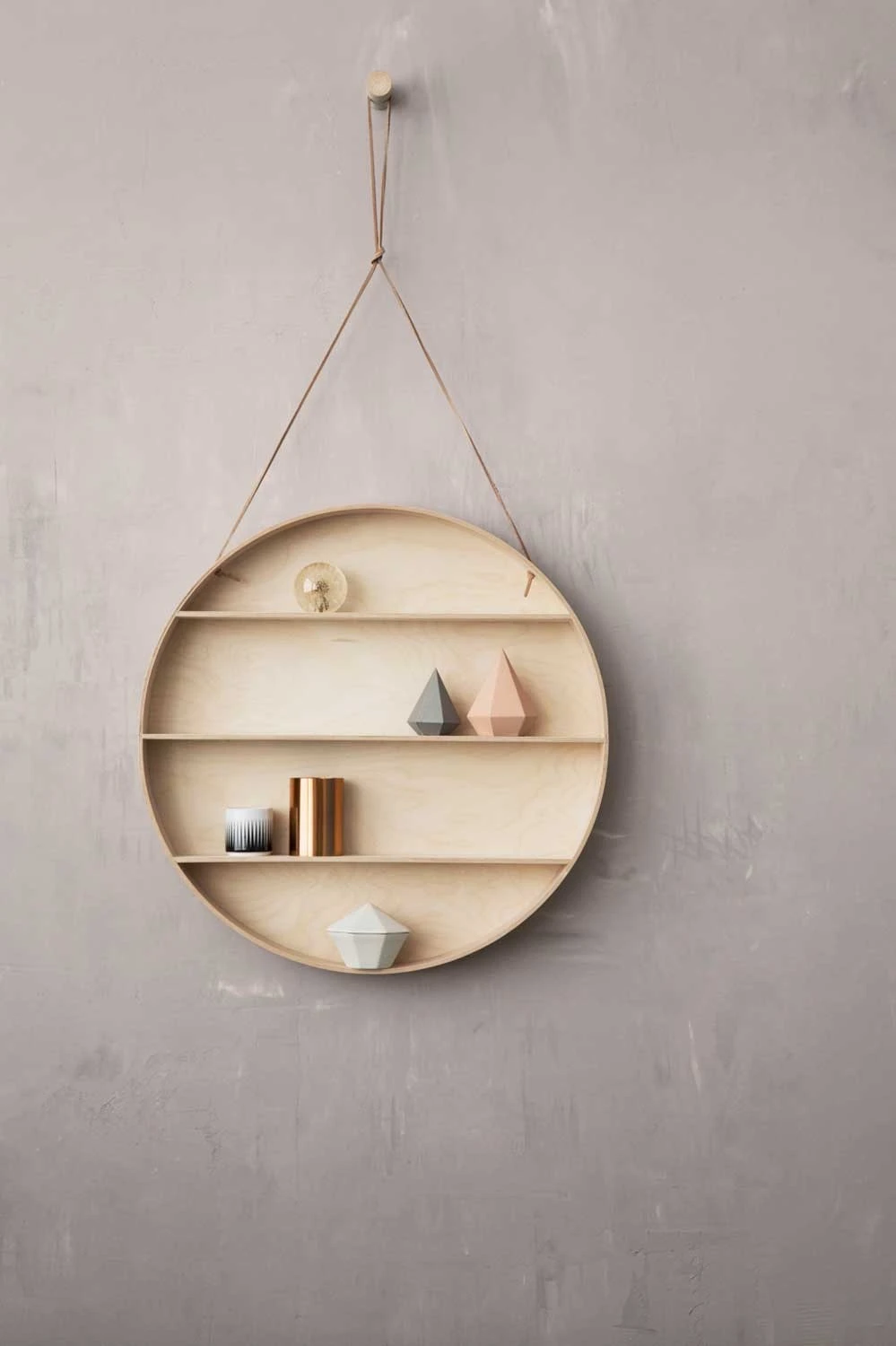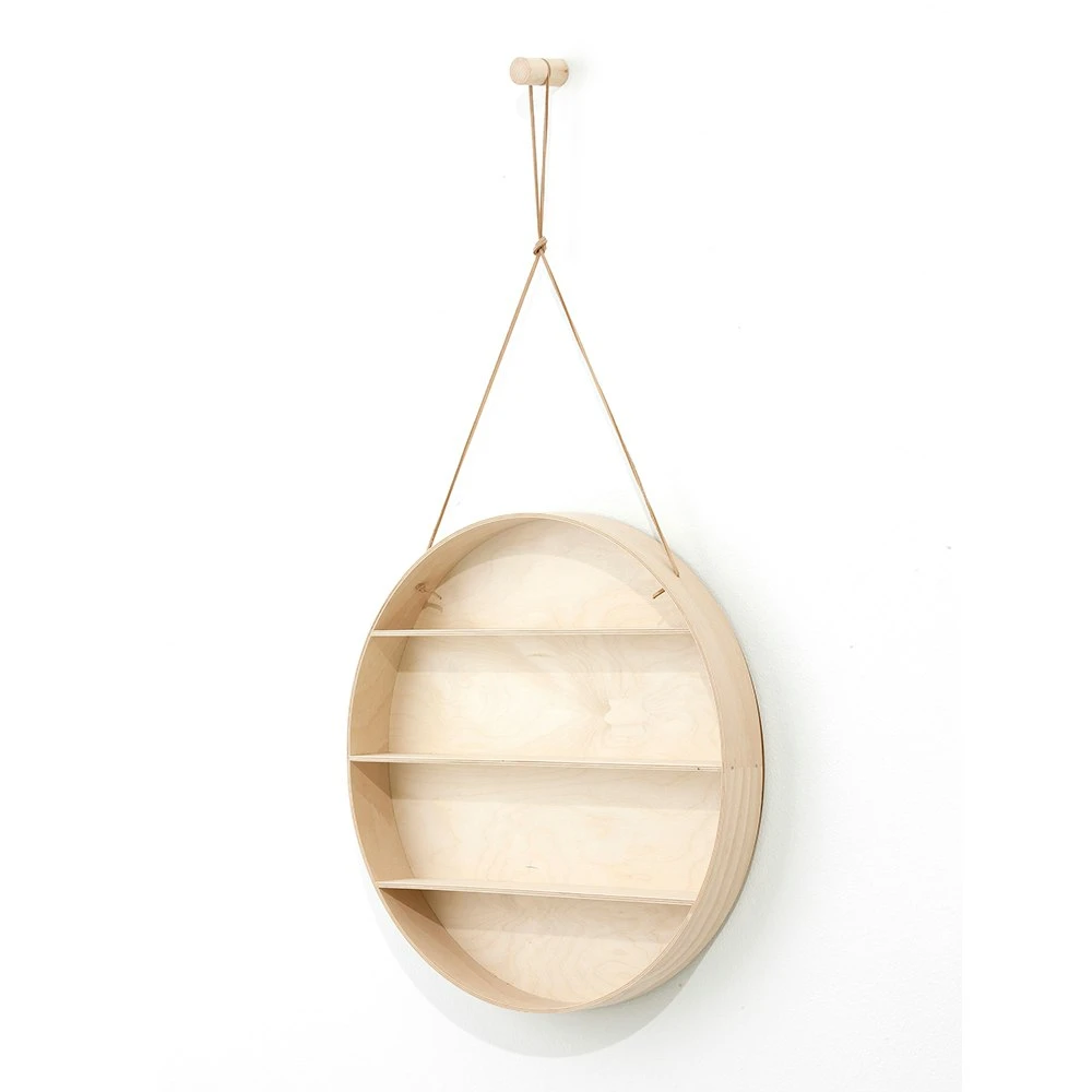 The Round Dorm will fit in any home and will give the wall an elegant, unique and delicate look. Use it for storage or all your favourite little things. It is made of beech and birch plywood, hangs in a leather string and comes with a beech hook.