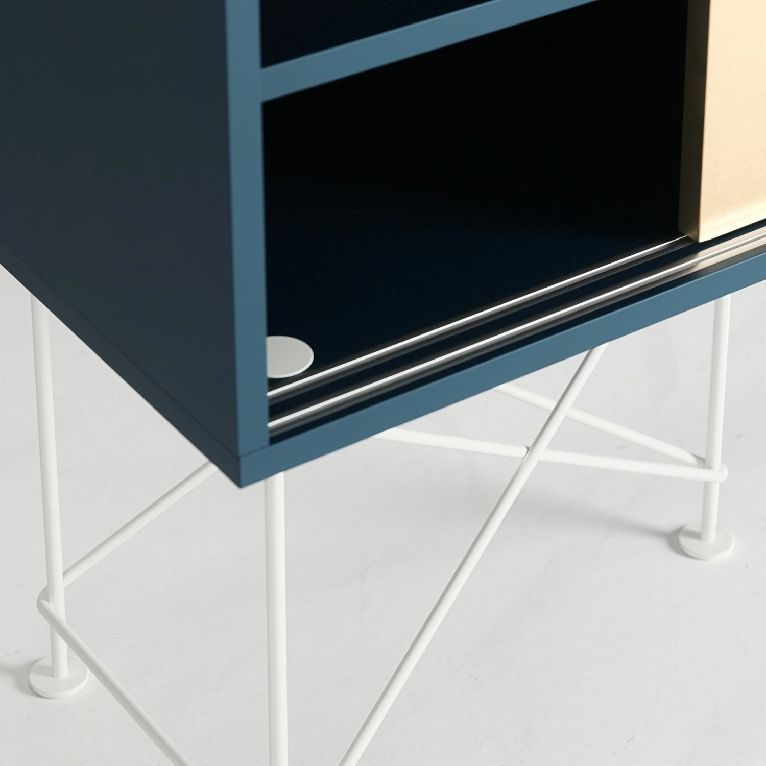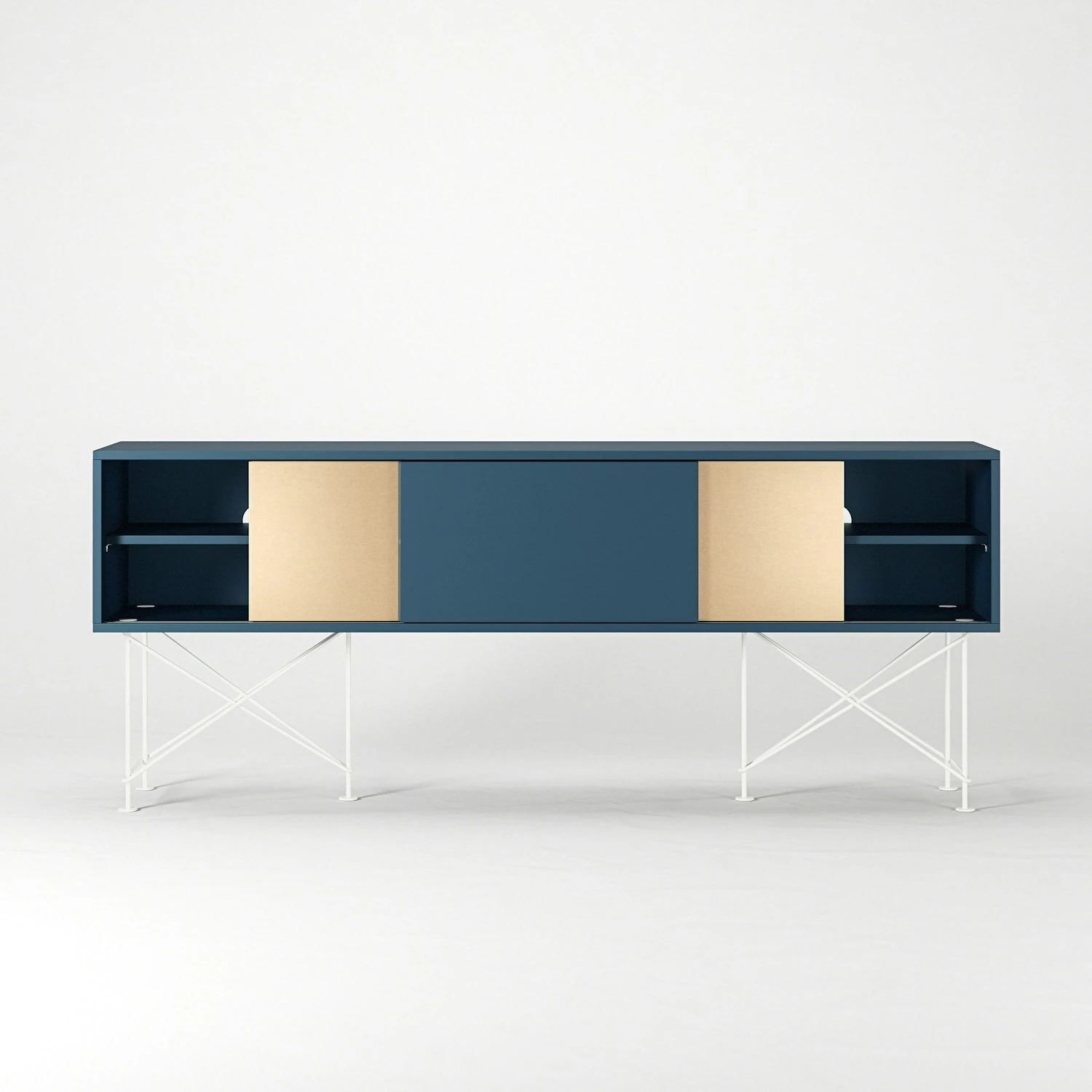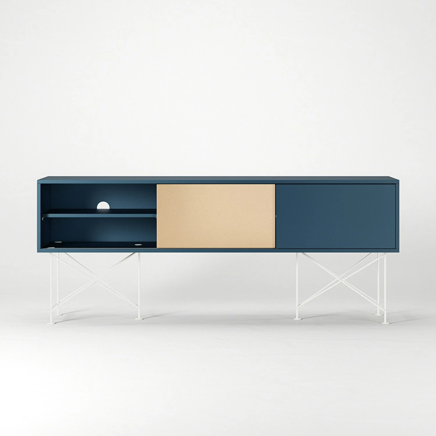 A functional form and a function that delivers, Vogue is both practical and stylish. Behind the sliding hatches, a shelf per section is hidden. Removable for best storage. At the back of each compartment, there is an opening for the cables to be pulled through to the back.
