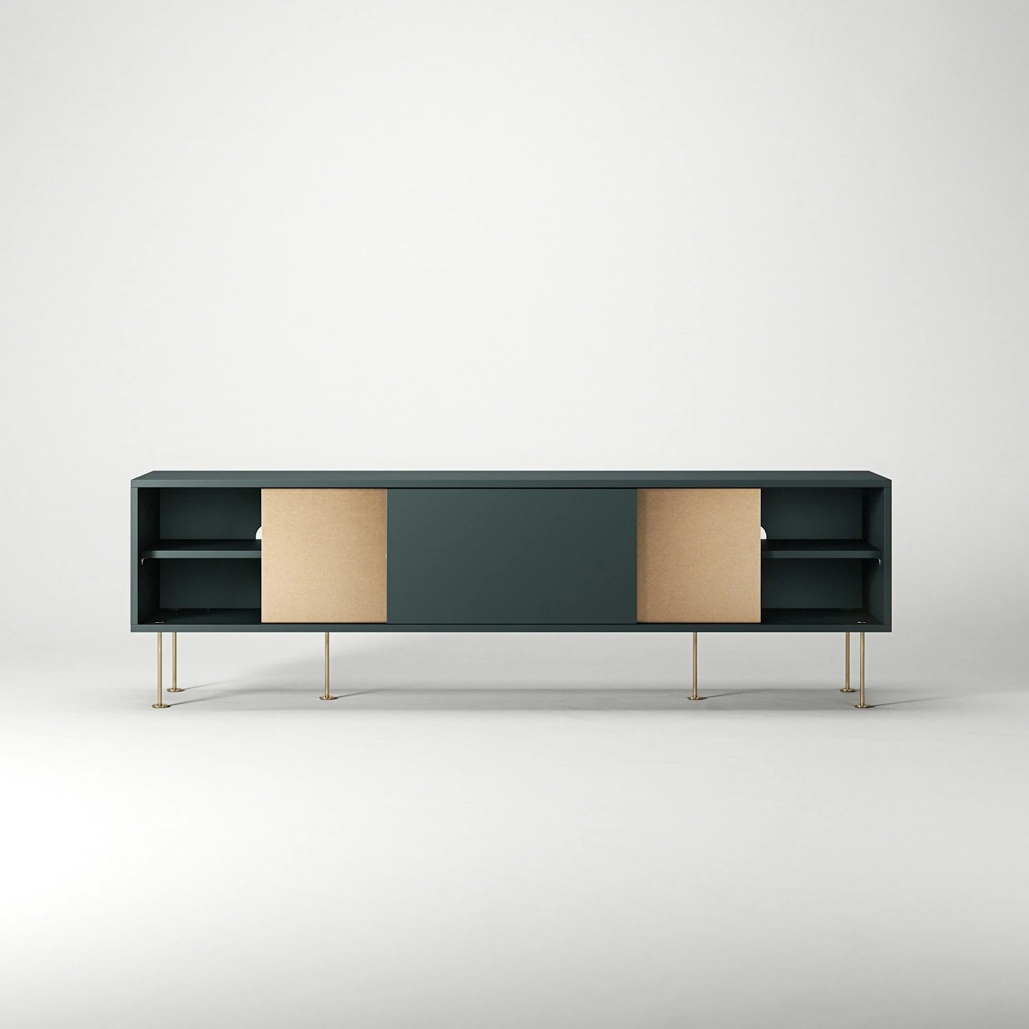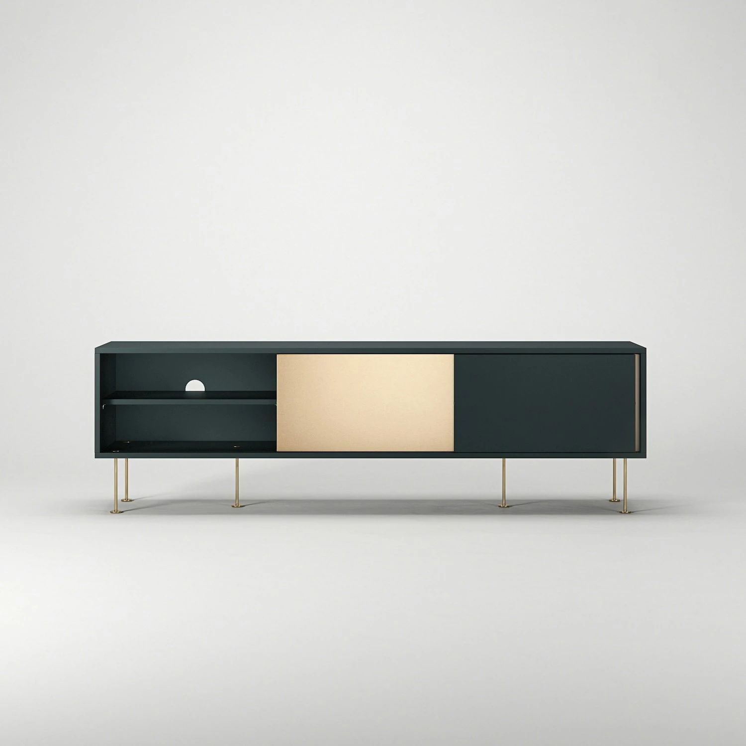 A functional form and a function that delivers, Vogue is both practical and stylish. Behind the sliding hatches, a shelf per section is hidden. Removable for best storage. At the back of each compartment, there is an opening for the cables to be pulled through to the back.